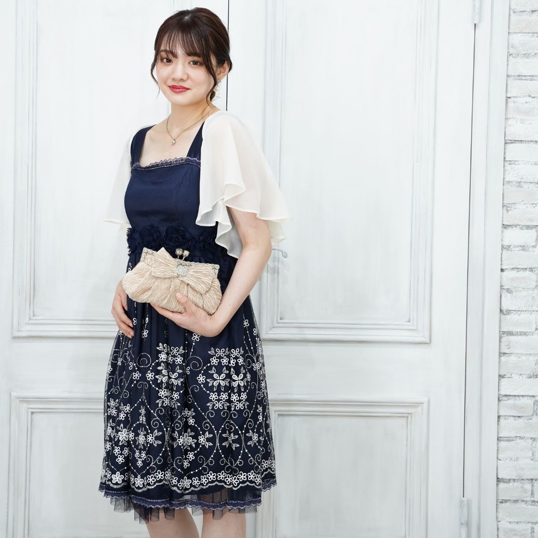 このストールに黒いドレスを合わせてしまうと地味な印象になってしまうので、ドレスは華やかで明るい色を選んでください。