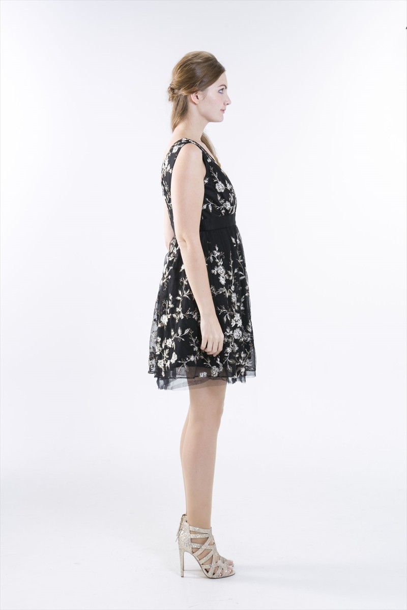 ・黒ベースに花刺繍が繊細に装飾されています。