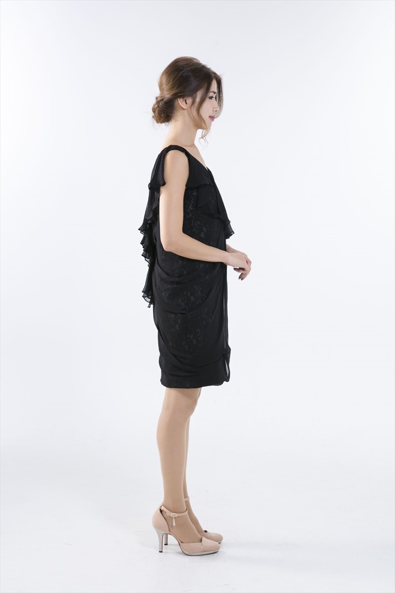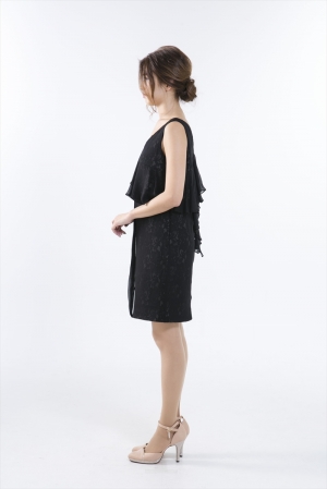 ・レース柄の生地にシフォン素材がドレープ状に重ねられています。