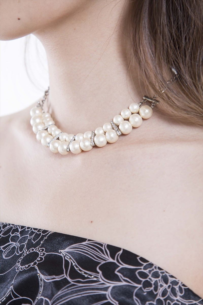 2連パール&ビジューネックレス シルバー系