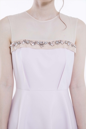 ・肩まわりがシースルーやストーンラインなど、繊細なデザインのドレスです。