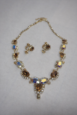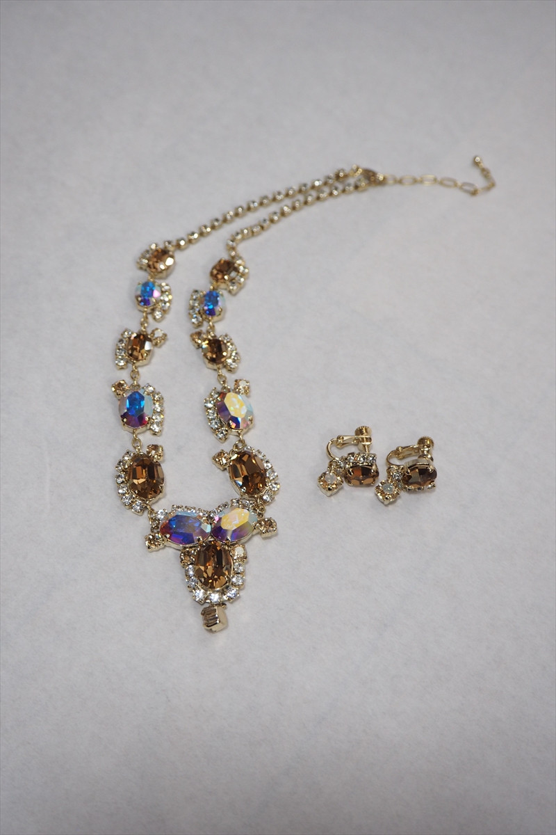 ・太目のゴールドチェーンにブリリアントカットストーンが豊富にあしらわれた、ネックレスとイヤリングのセットです。
