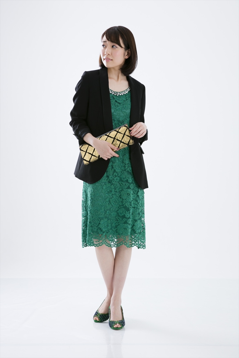 ・人と被りにくい落ち着いたグリーンのドレスです。