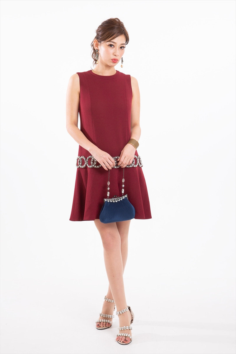 ビジュー付ローフレアドレス