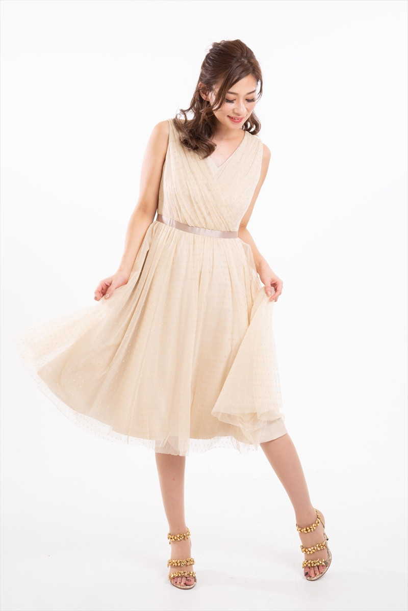 ・チュール素材には、小さなゴールドドットが装飾されていて、華やかさをプラス。