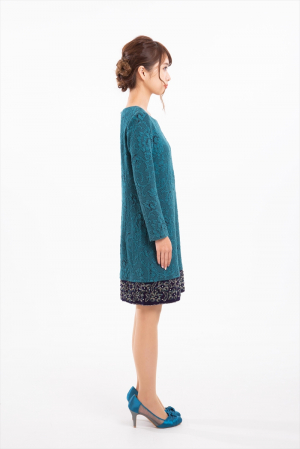 袖ありダマスク柄ドレス