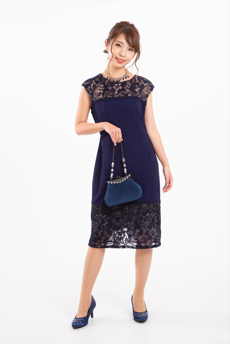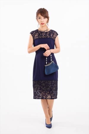 ・ヨーク部分とスカート裾がレースの切替ドレスです。
