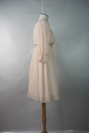 ・ウエストの光沢のあるベルトとビーズがアクセントになっています。