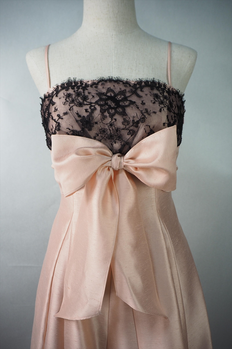 ・光沢のあるピンクとブラックのキャミソールドレスです。