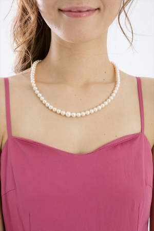 ・肌になじみやすい、優しいピンクベージュのドレスです。
