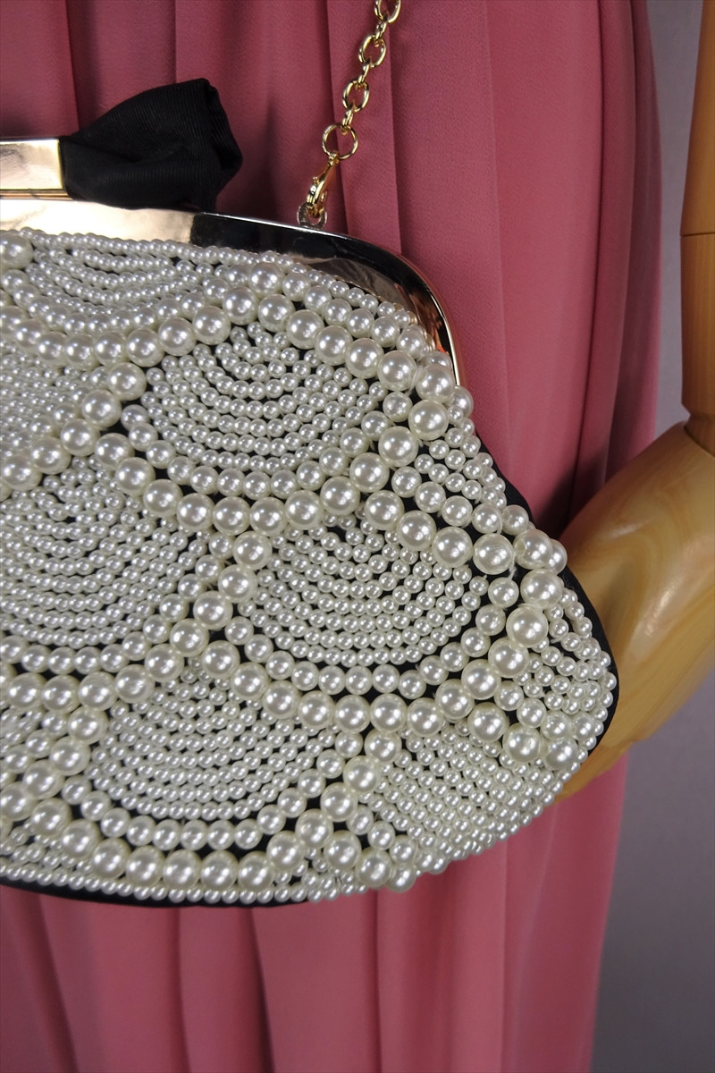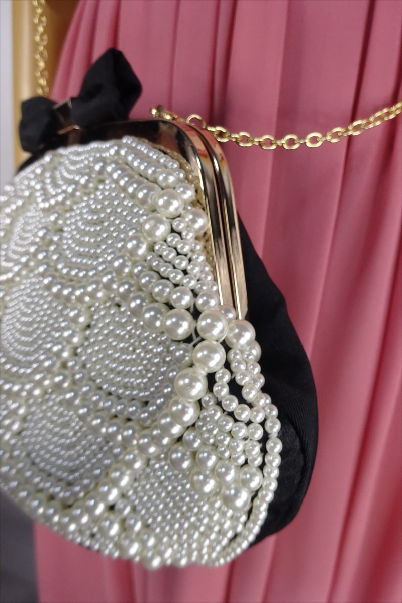 - 大小のパールビジューで装飾された華やかなバッグです。