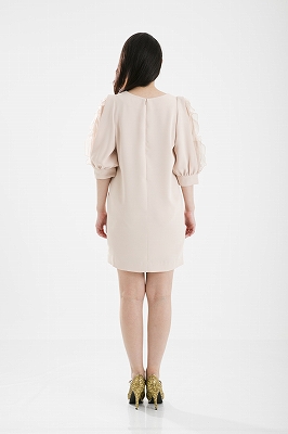 ・袖部分がシースルーのフリルになっていて二の腕をカバーしてくれます。