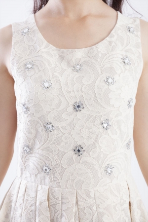 ・白のレース地にキラキラひかえめラメ入りワンピース。