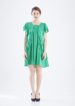 ・鮮やかなグリーンでシルク100%のとても着心地の良いドレスです。