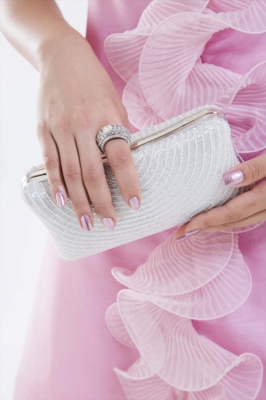 ・ジャガードによる華やかな配色の花柄と裾にシフォンをあしらったドレスです。