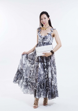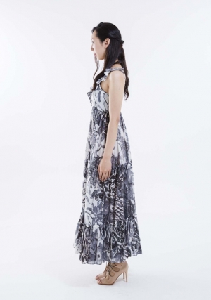 モノトーン花柄リゾート風ロングワンピース