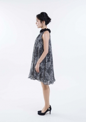 ・モノトーンカラーのAラインドレスなので、クールにもキュートにも着飾ることができます。