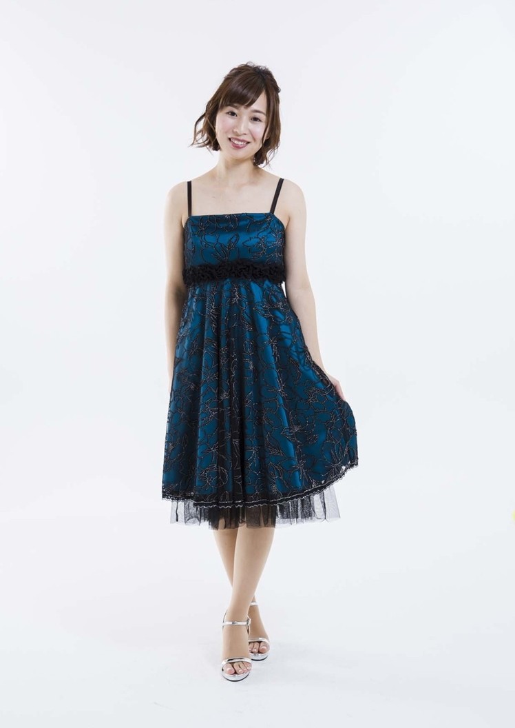 ・ウエストのお花ラインと裾から出るチュールレースが上品なドレスです。