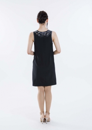 ・胸元にリーフモチーフの装飾がされたストレートラインのドレスです。