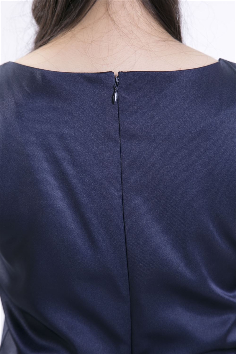 ・ネイビーベースの光沢素材に、スカート部分はブラックレースが重なります。