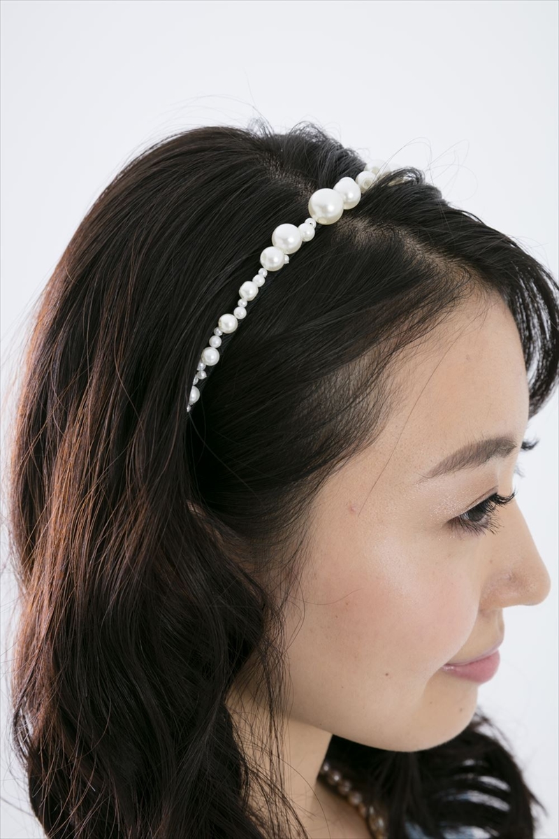 ・大小のパールがランダムに並んだどんなスタイルにも活躍するヘアアクセサリーです。