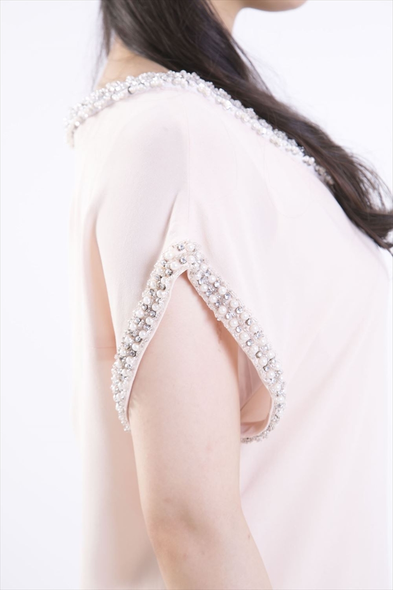 ・襟まわり、袖まわりがたっぷりビジューで装飾されています。