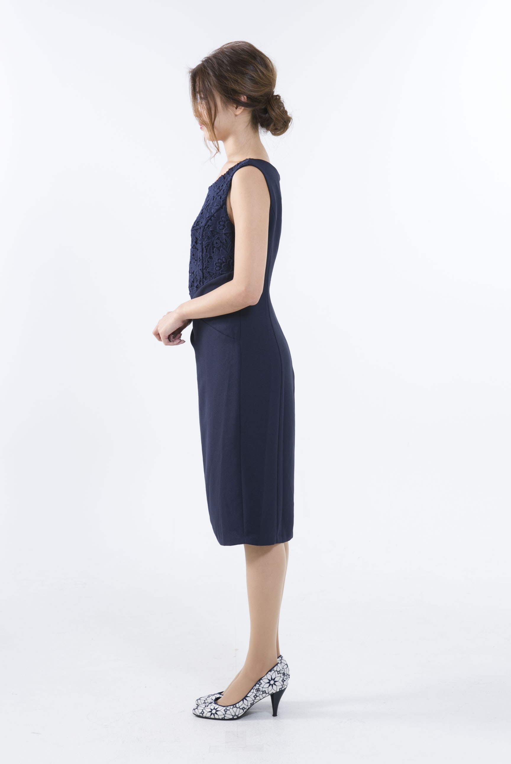 ・花柄のレースと、ウエストから流れるようなギャザーが大人の魅力満載のドレスです。